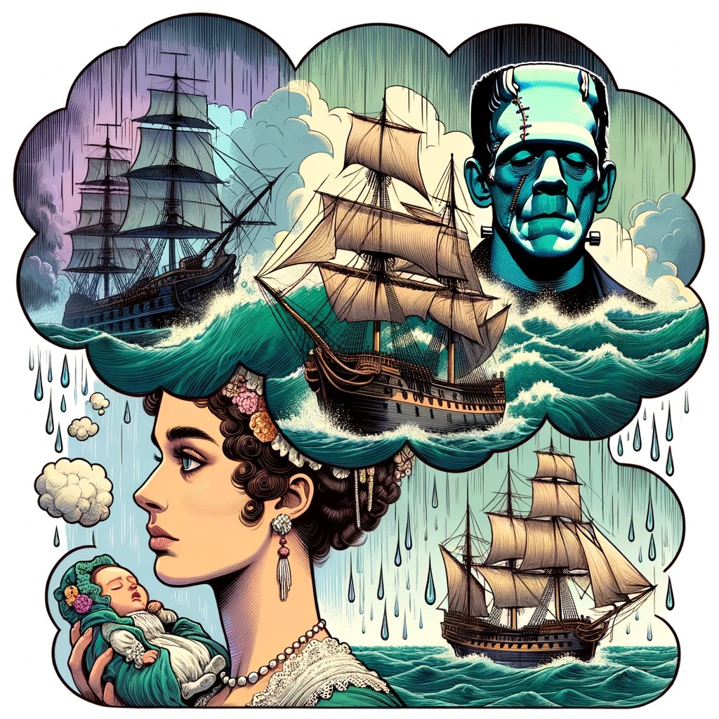 What was the spark? We know the enlightenment era in which Mary lived was one where science was beginning to unravel the mysteries of the natural world. This sense of possibility, coupled with being cooped up with her crazy, creative friends, perhaps (in addition to her husband, Mary shared the villa with their friends the poet Lord Byron and the writer John Polidori). Were questions of life and death weighing on her mind following the death of her daughter? Compounded by the weather?